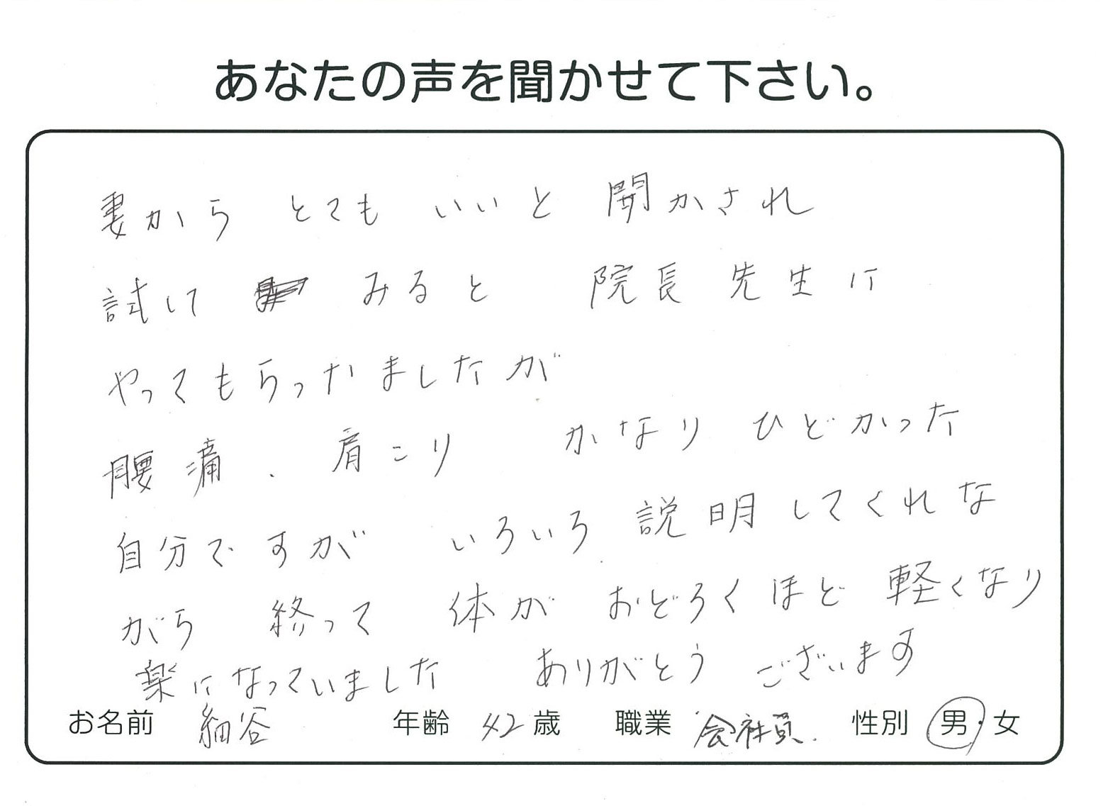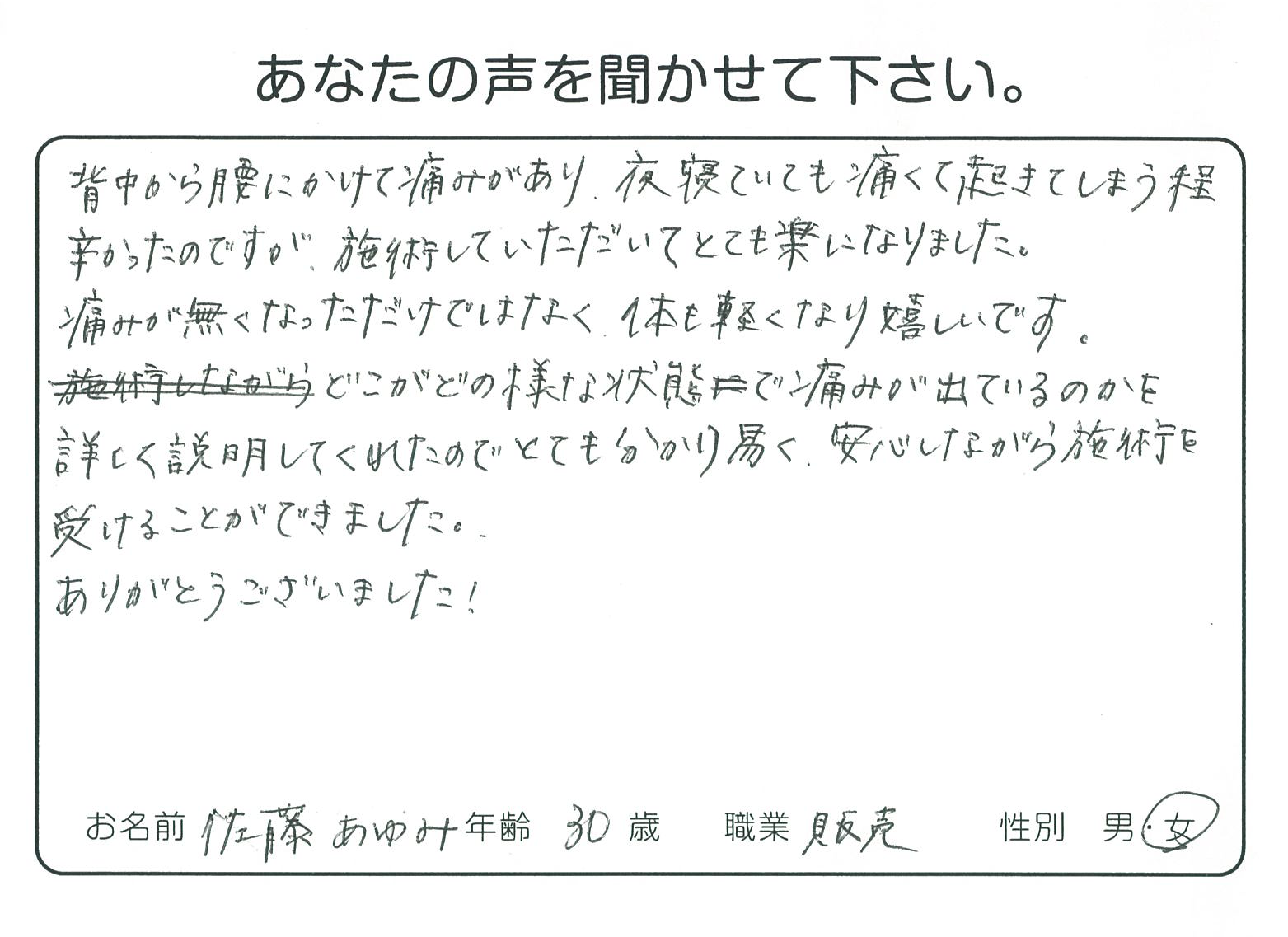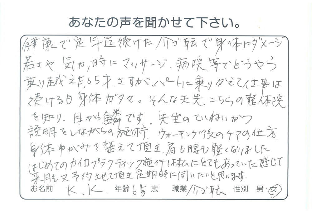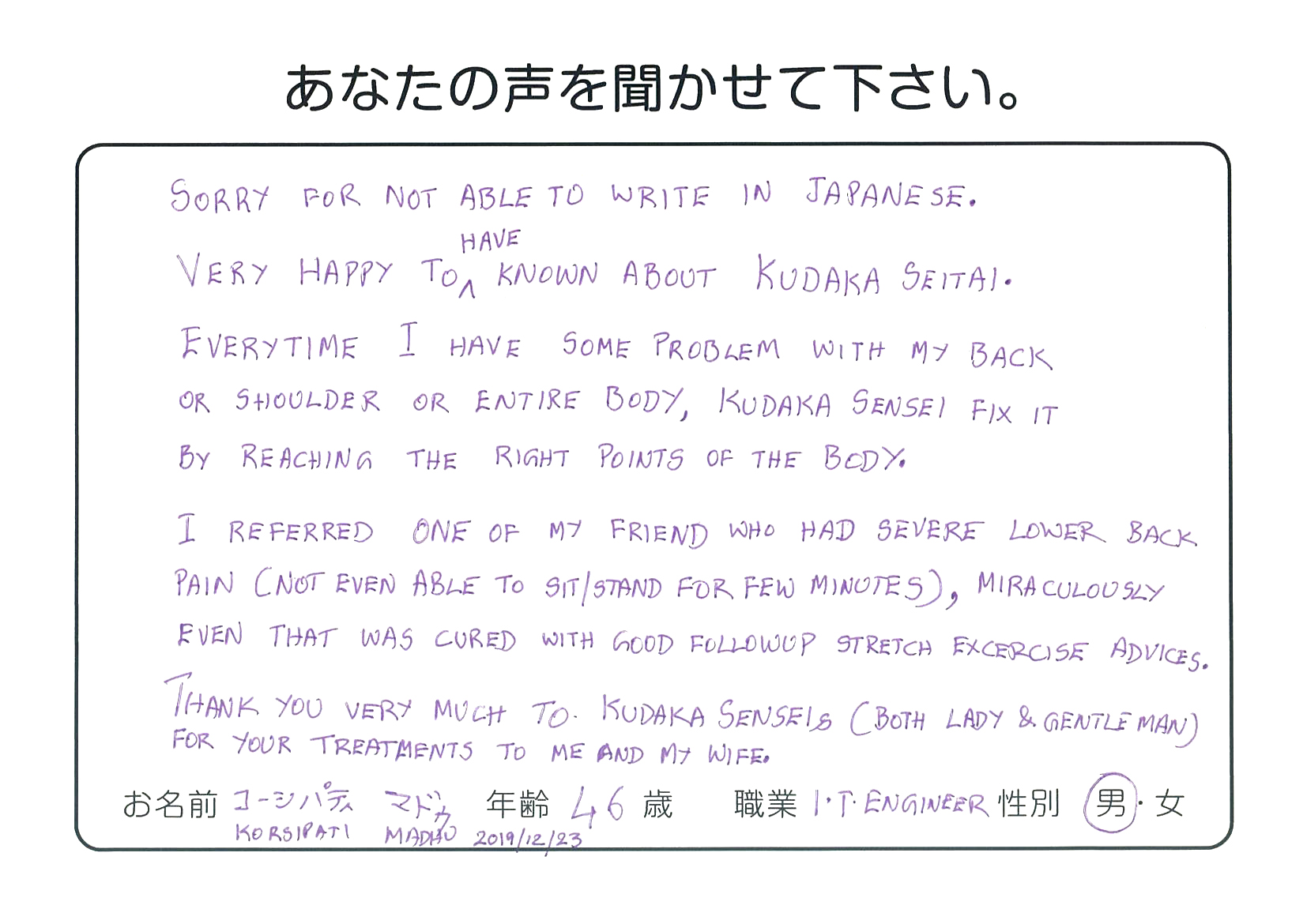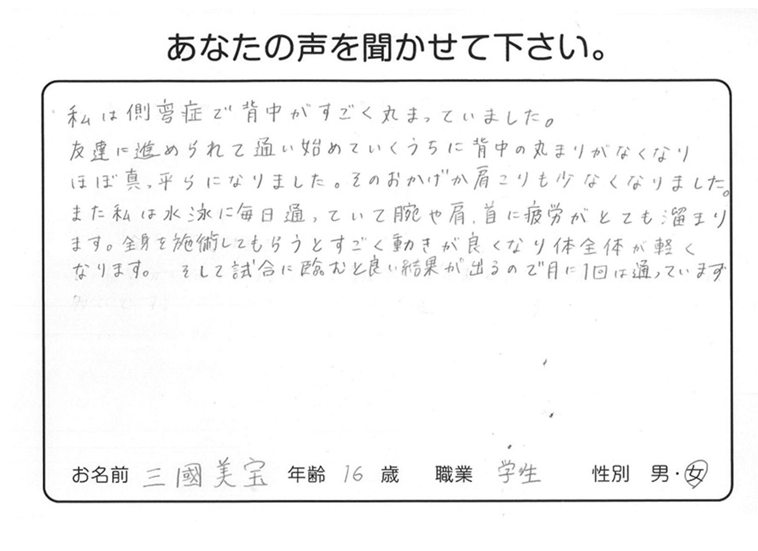 たくさんのお言葉ありがとうございます。実際に見て感じた事を言葉に表す事って簡単な事ではないですね!みなさん一生懸命に書いていただいた事が無駄にならないよう施術させていただきます。