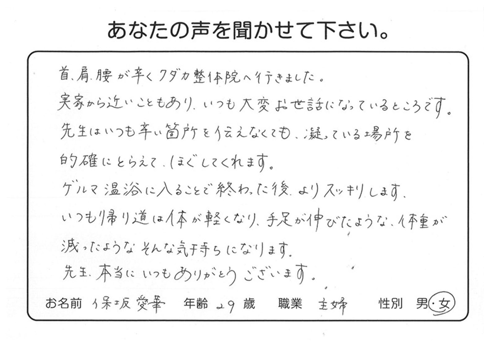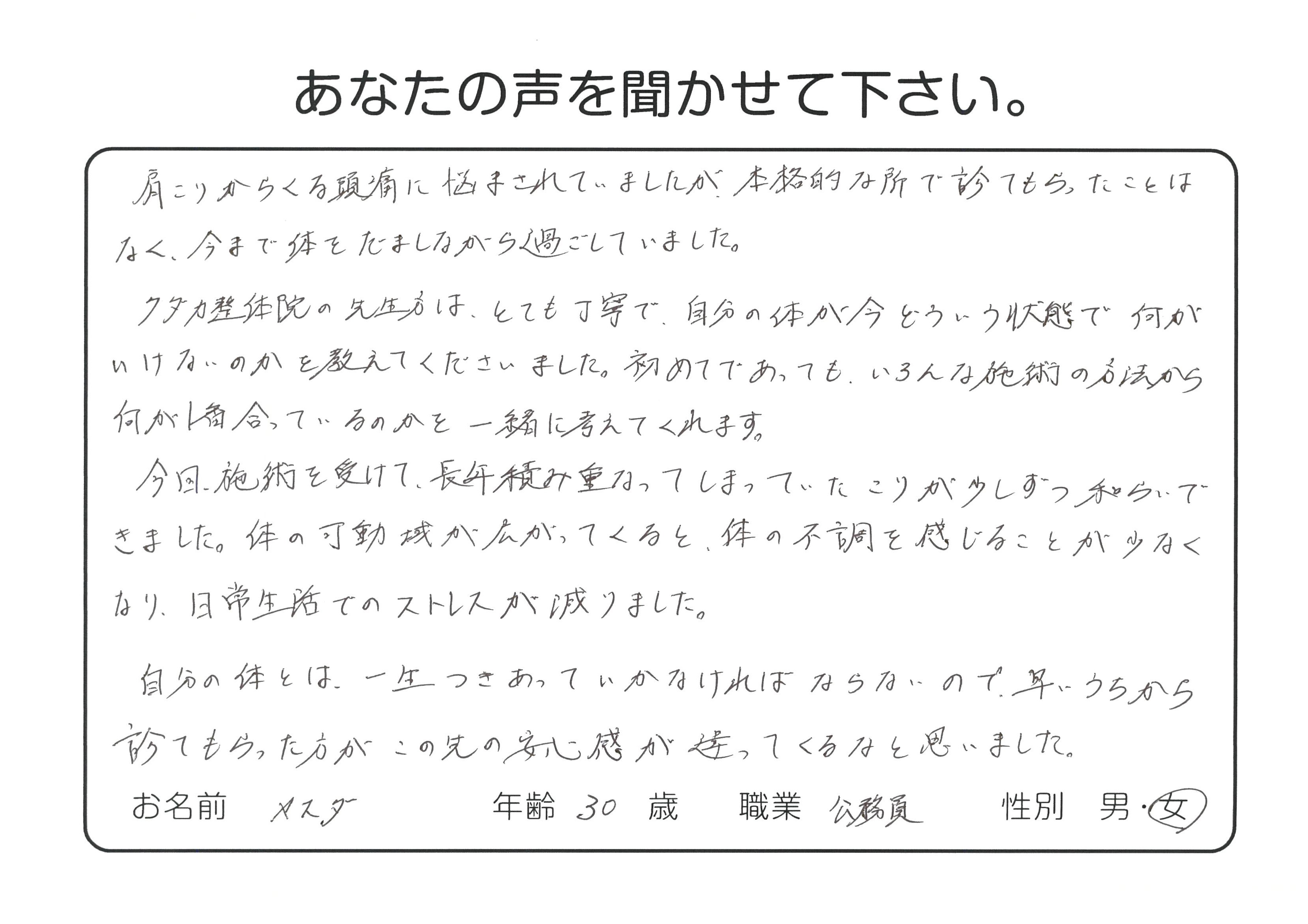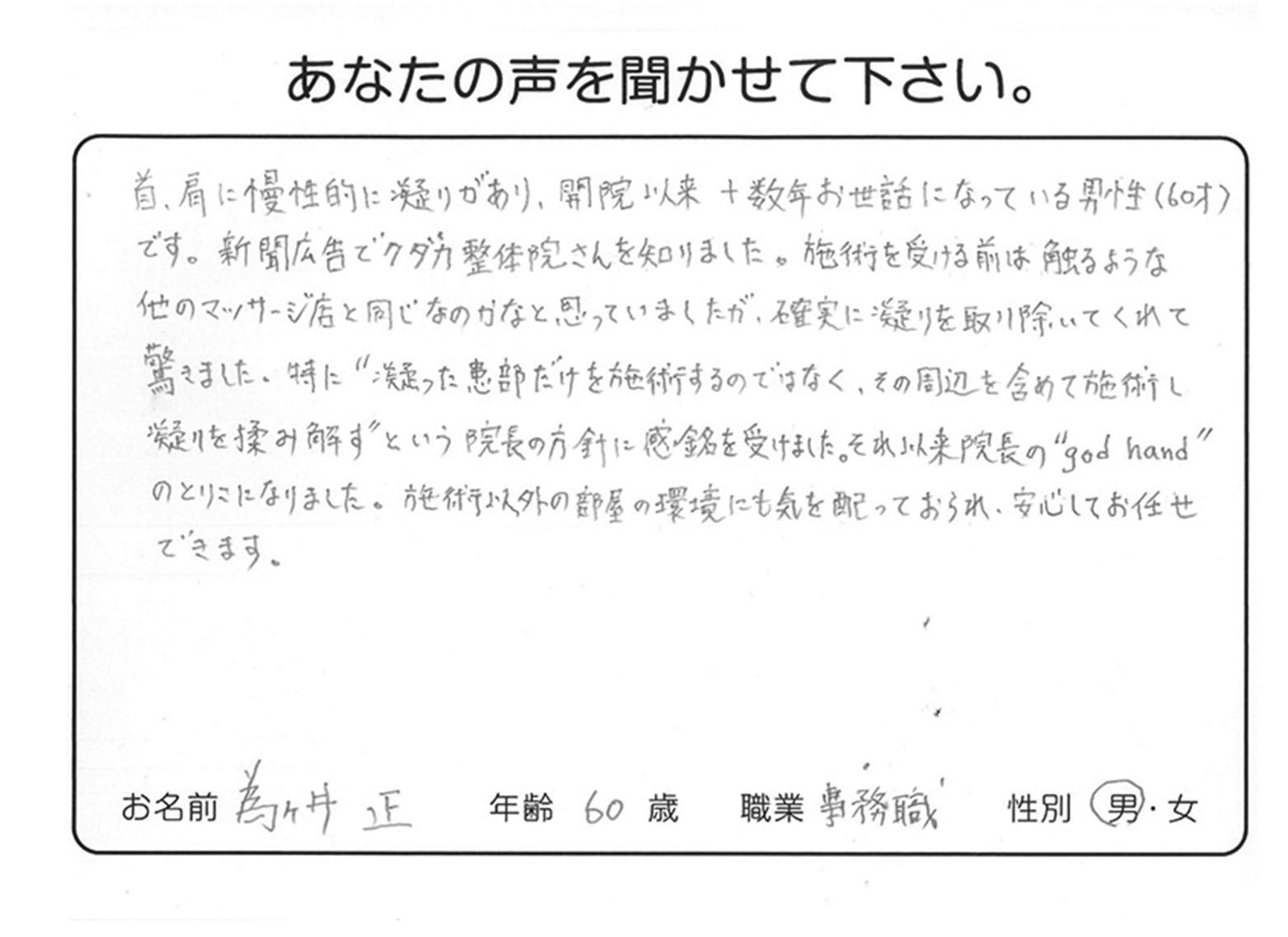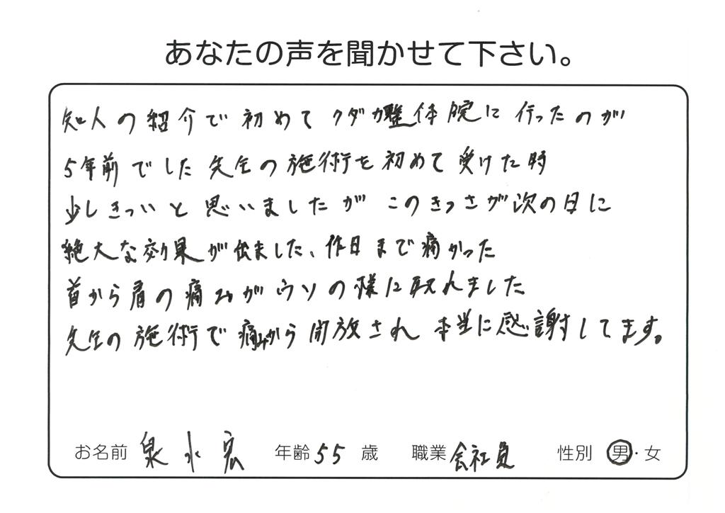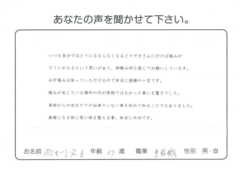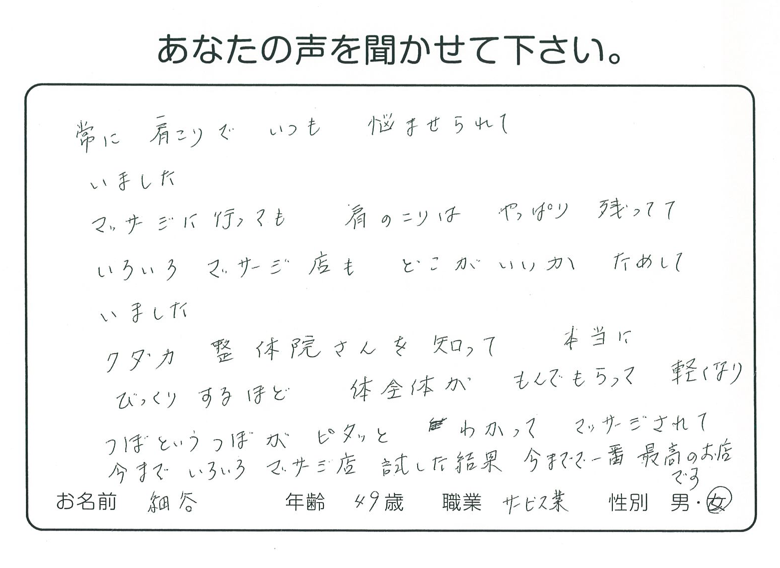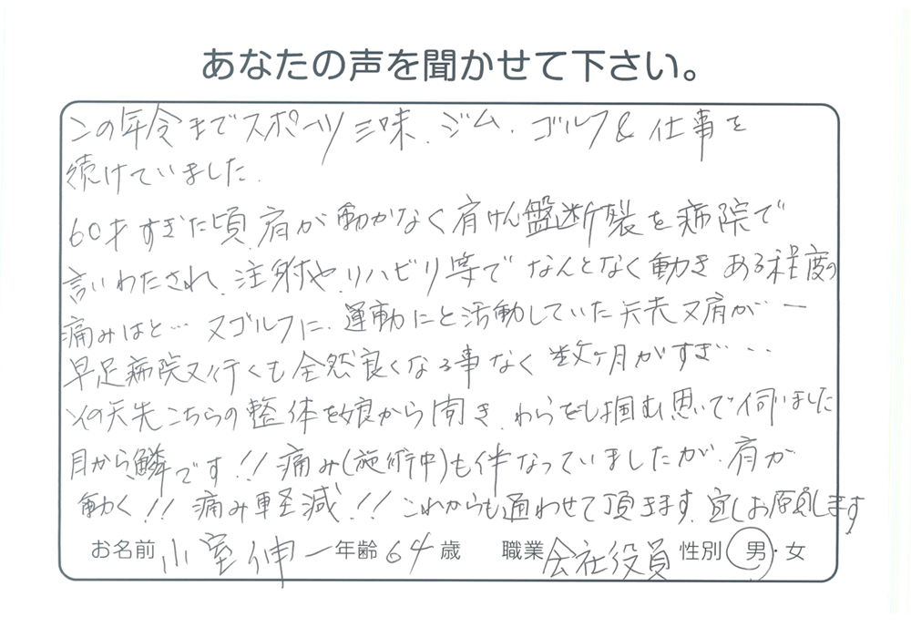 たくさんのお言葉ありがとうございます。実際に見て感じた事を言葉に表す事って簡単な事ではないですね!みなさん一生懸命に書いていただいた事が無駄にならないよう施術させていただきます。