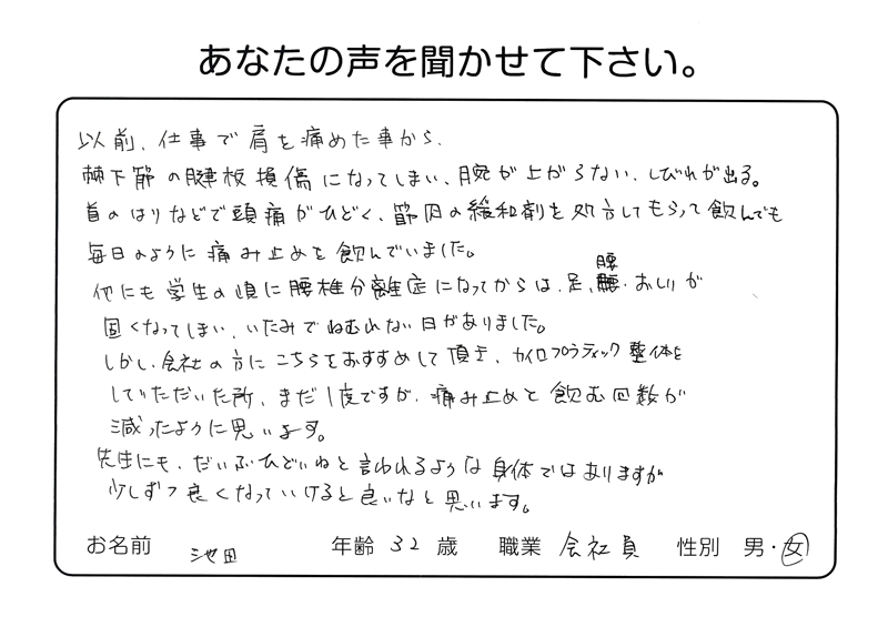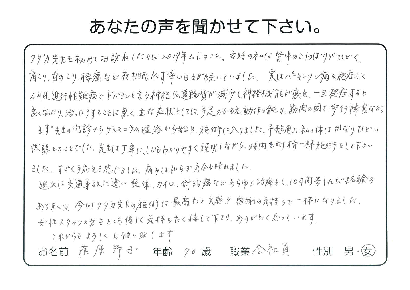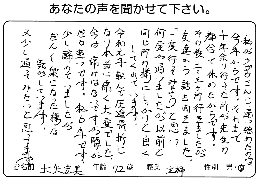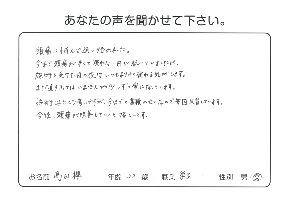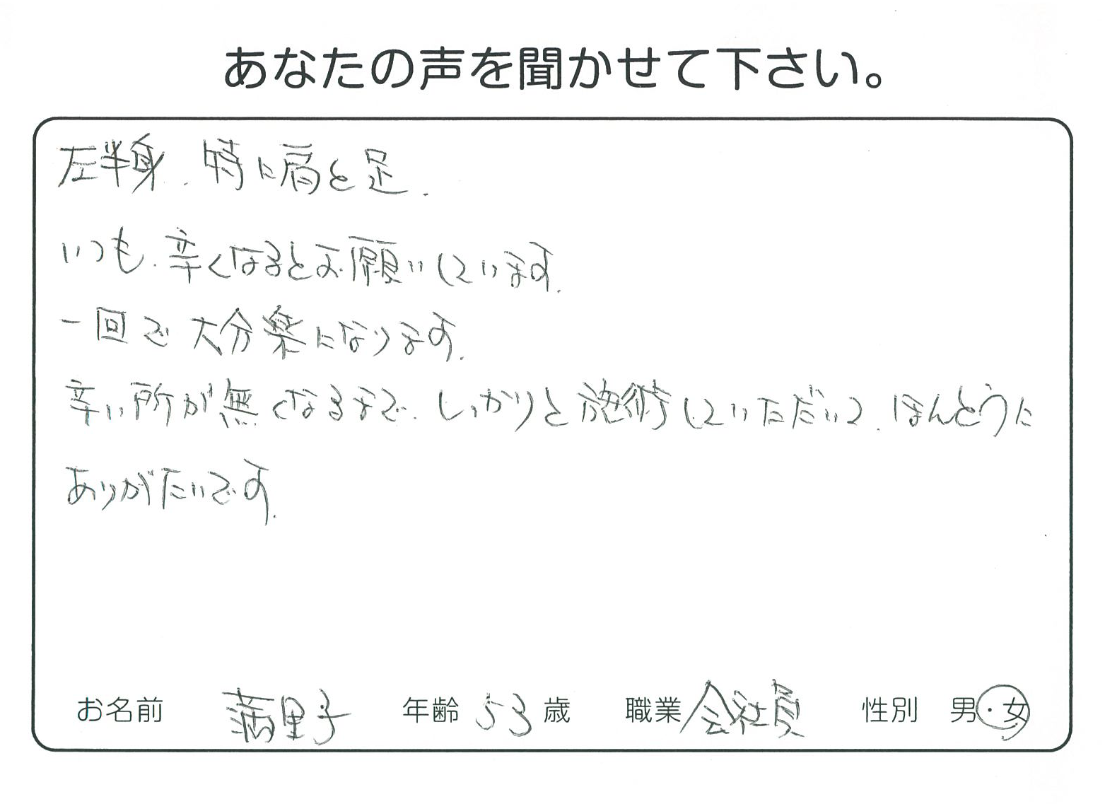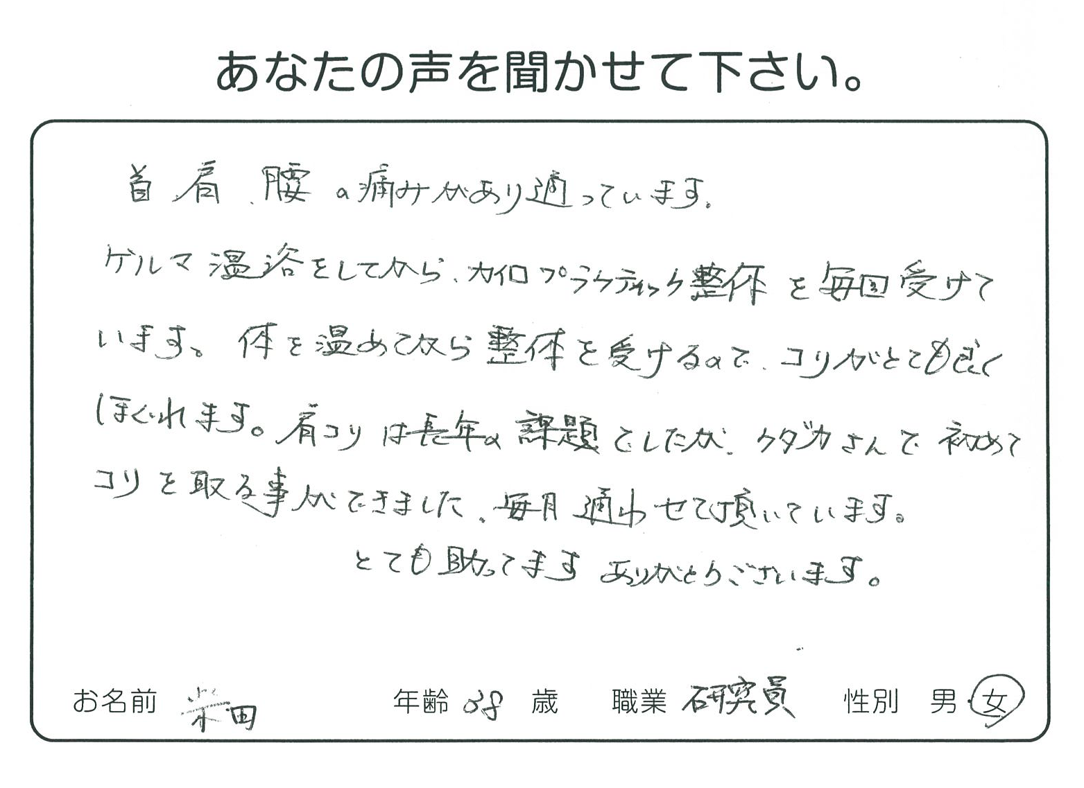 たくさんのお言葉ありがとうございます。実際に見て感じた事を言葉に表す事って簡単な事ではないですね!みなさん一生懸命に書いていただいた事が無駄にならないよう施術させていただきます。