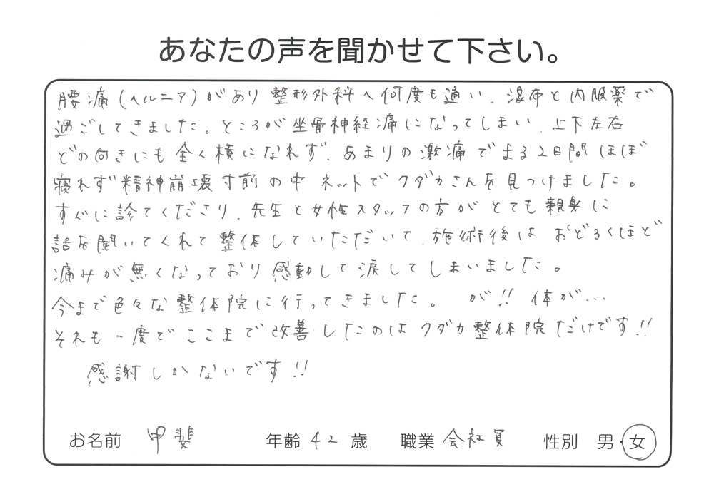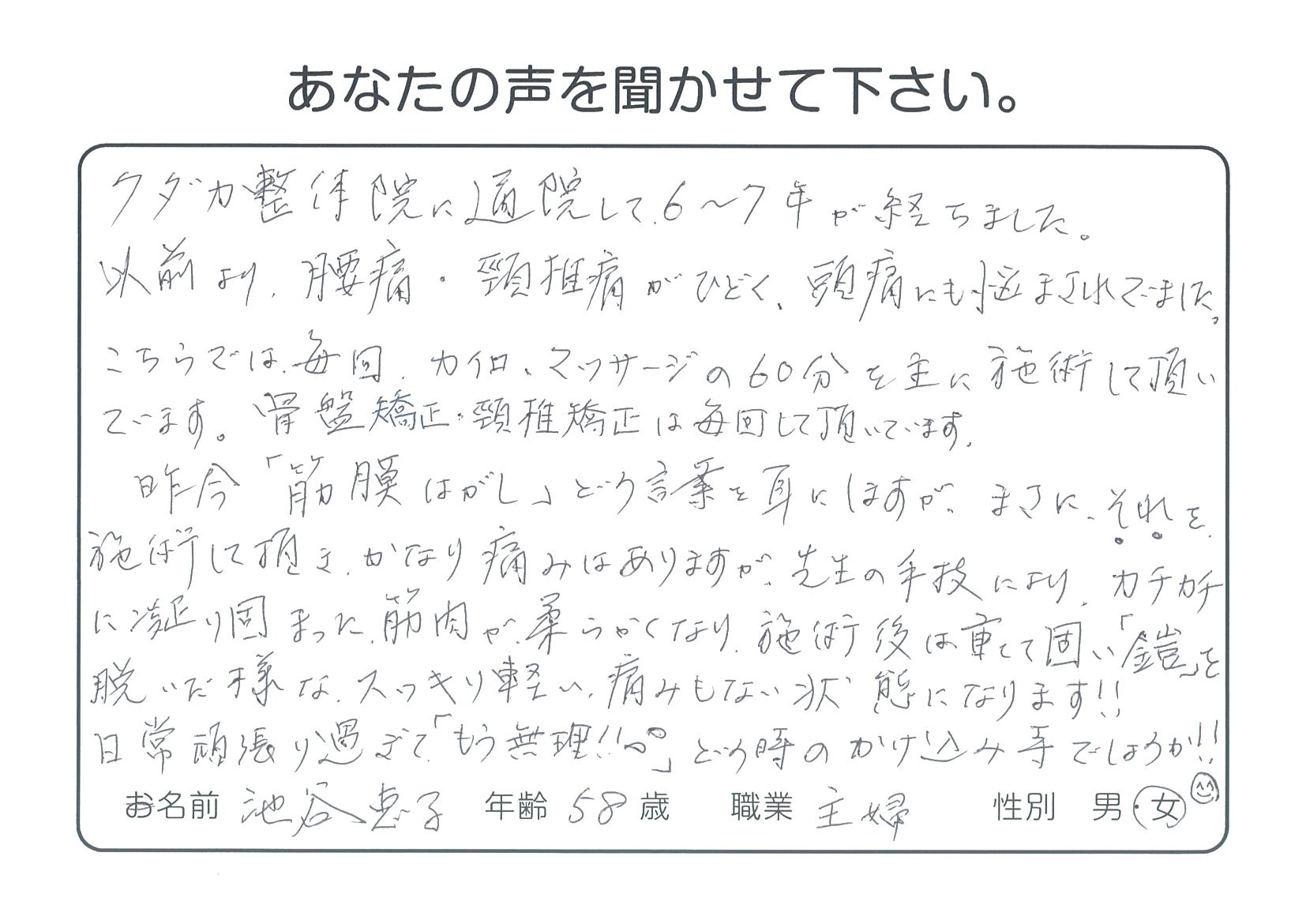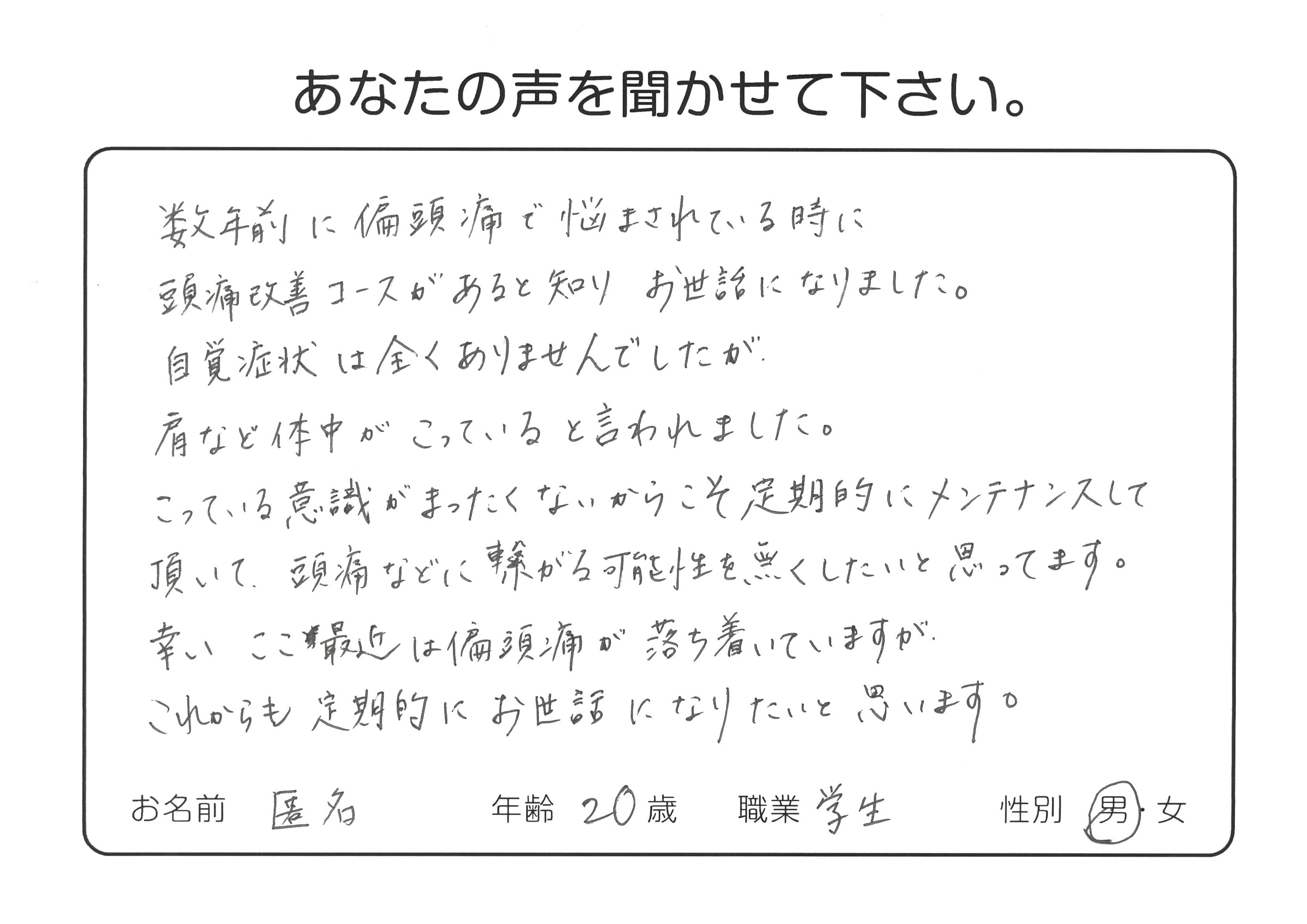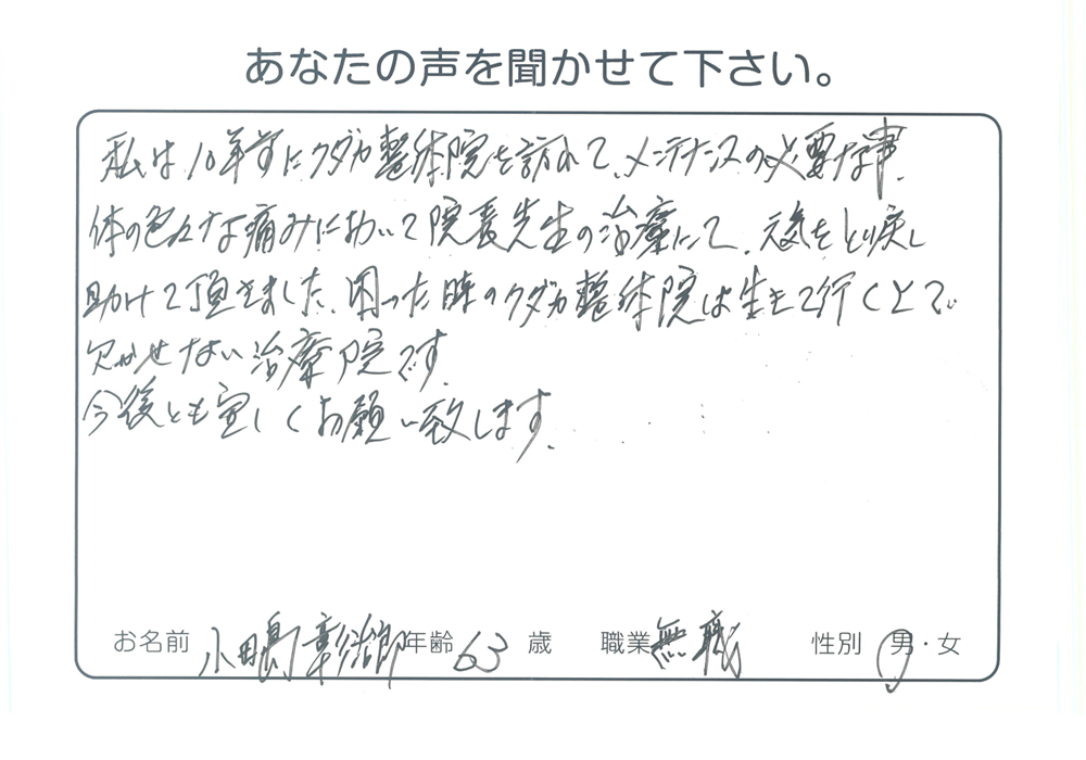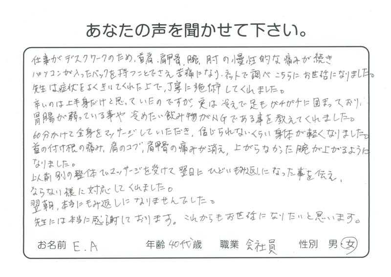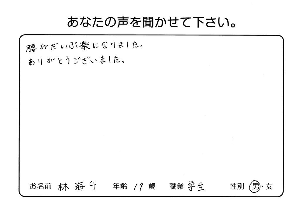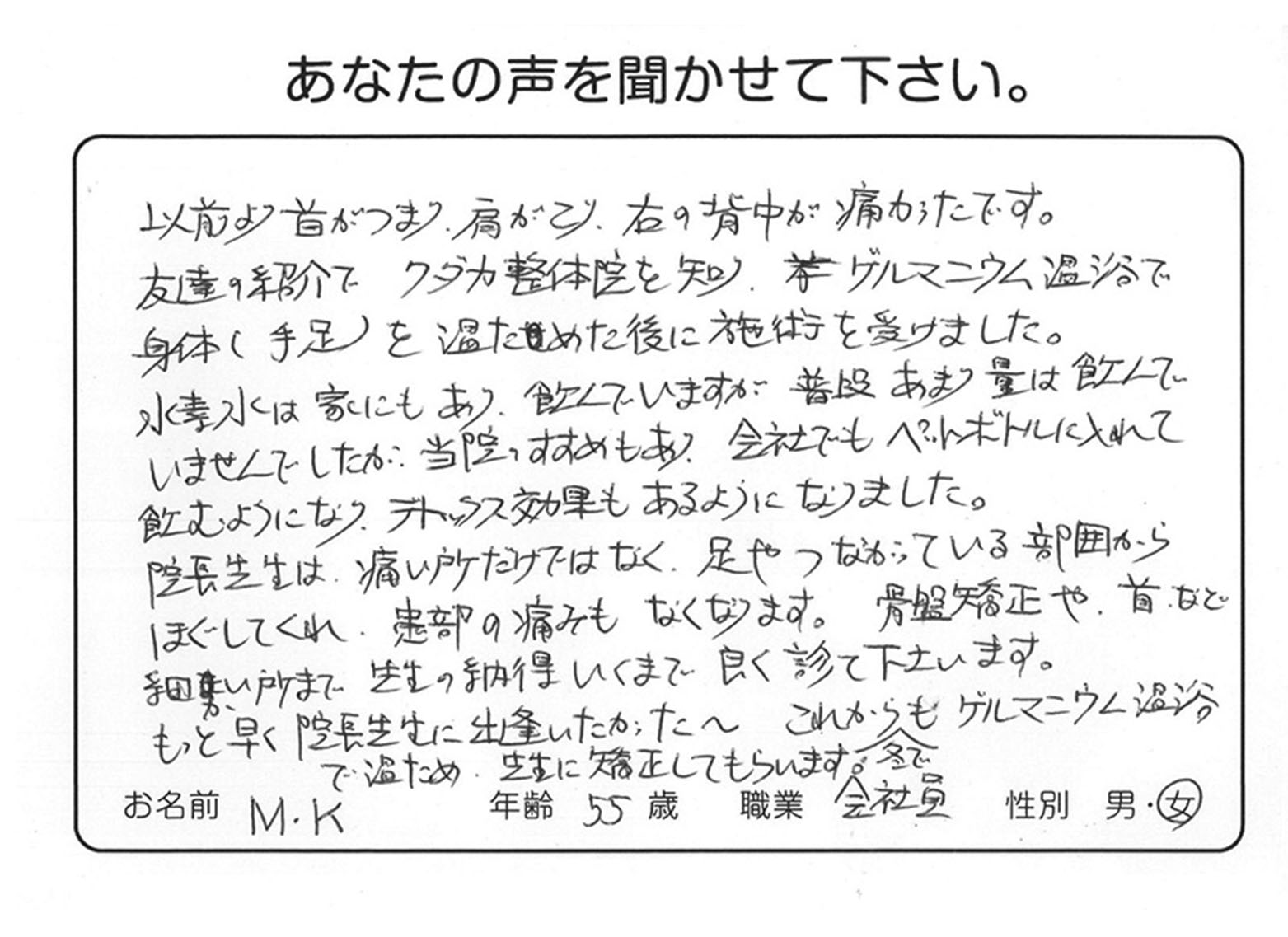 たくさんのお言葉ありがとうございます。実際に見て感じた事を言葉に表す事って簡単な事ではないですね!みなさん一生懸命に書いていただいた事が無駄にならないよう施術させていただきます。