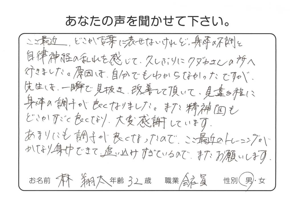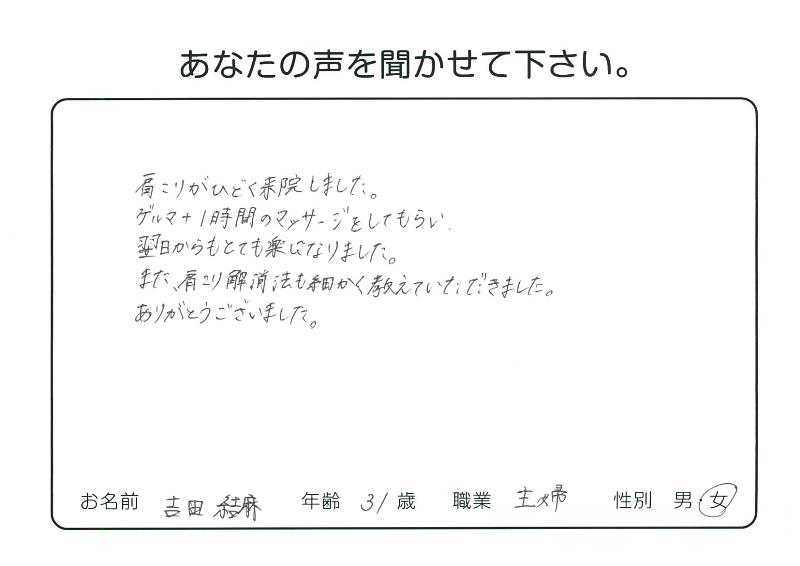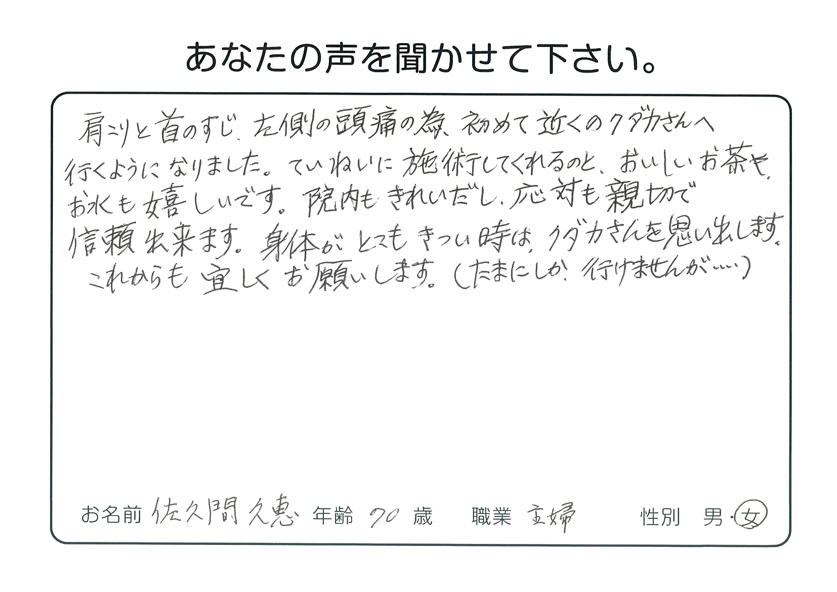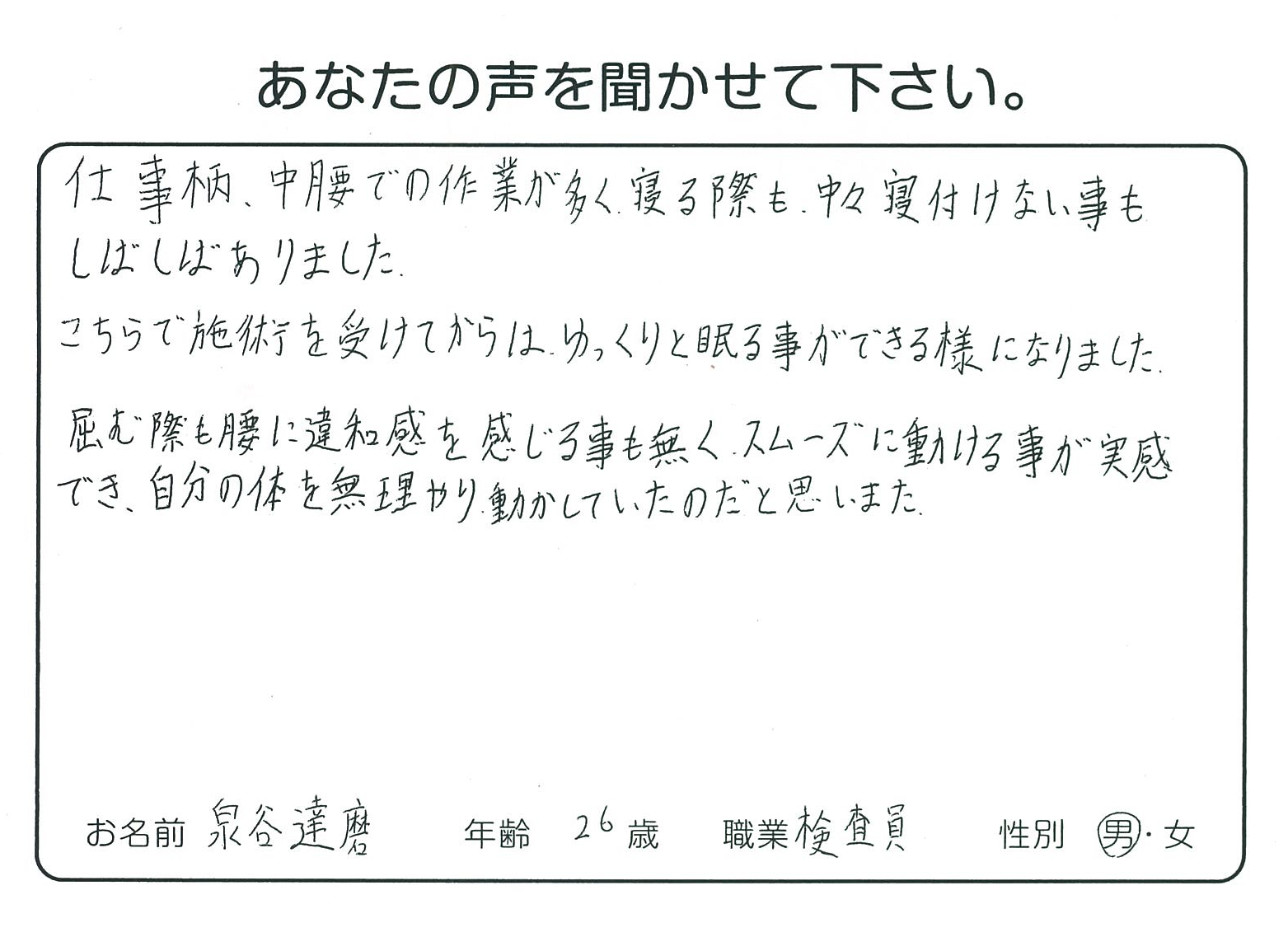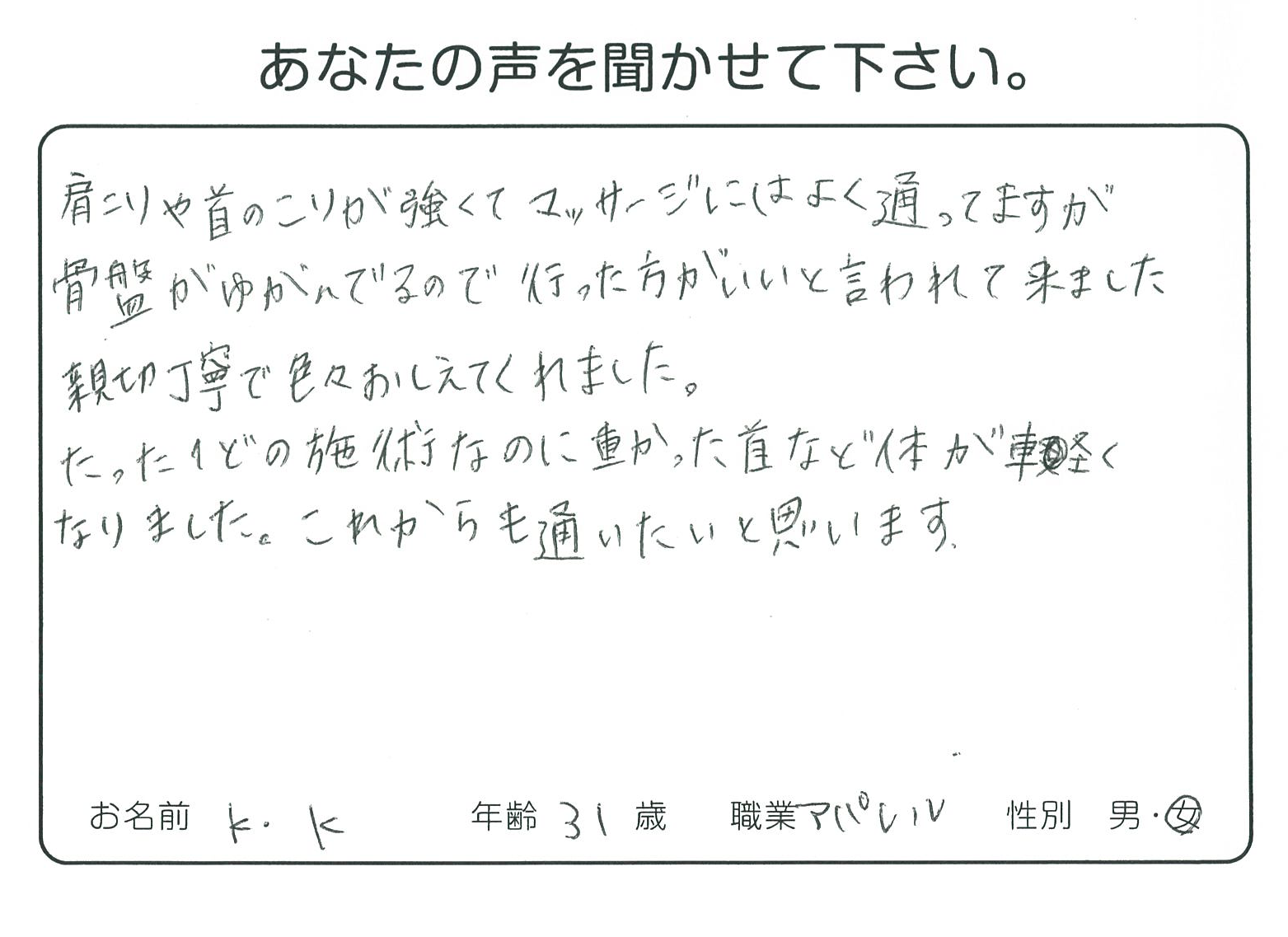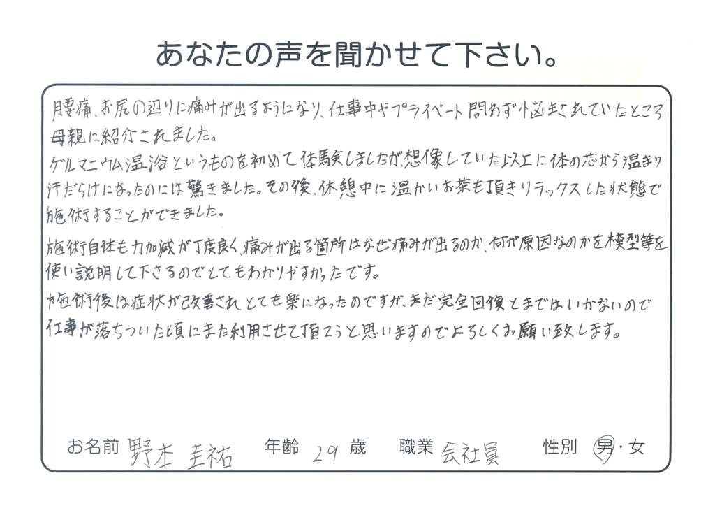 たくさんのお言葉ありがとうございます。実際に見て感じた事を言葉に表す事って簡単な事ではないですね!みなさん一生懸命に書いていただいた事が無駄にならないよう施術させていただきます。