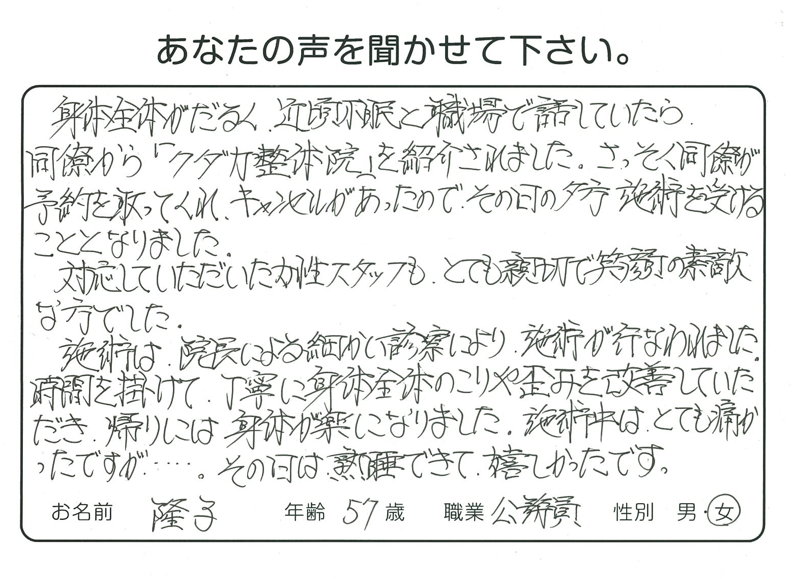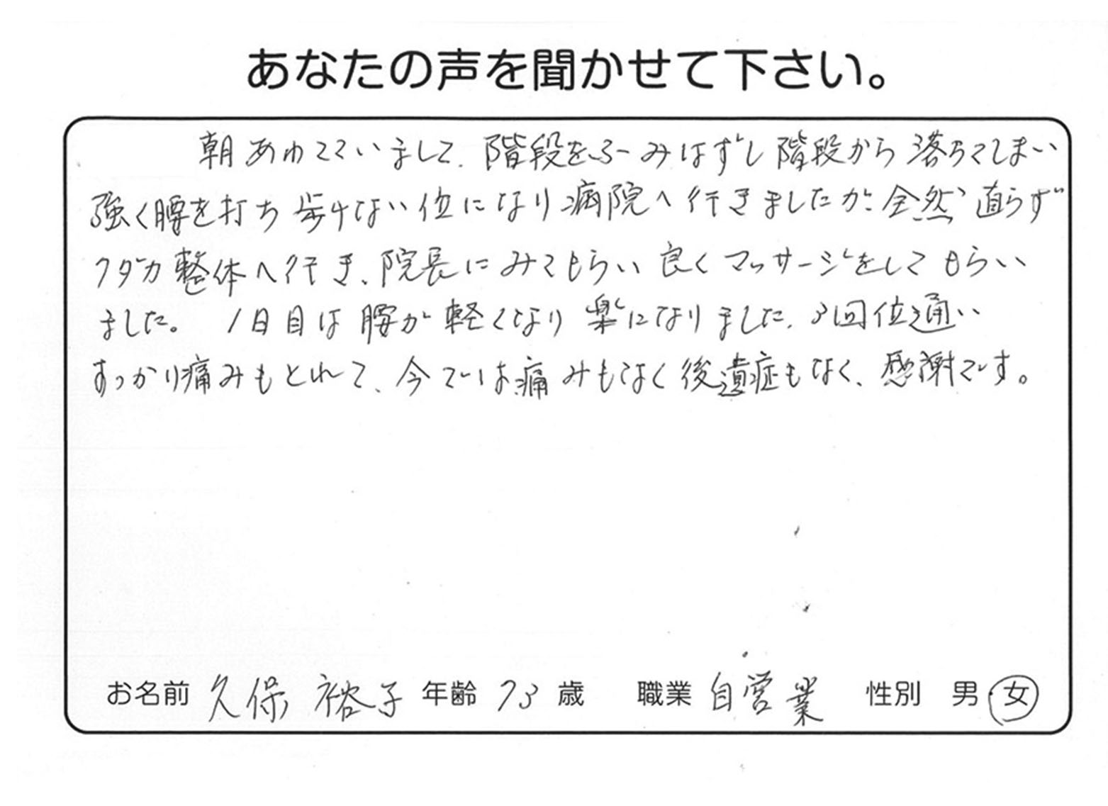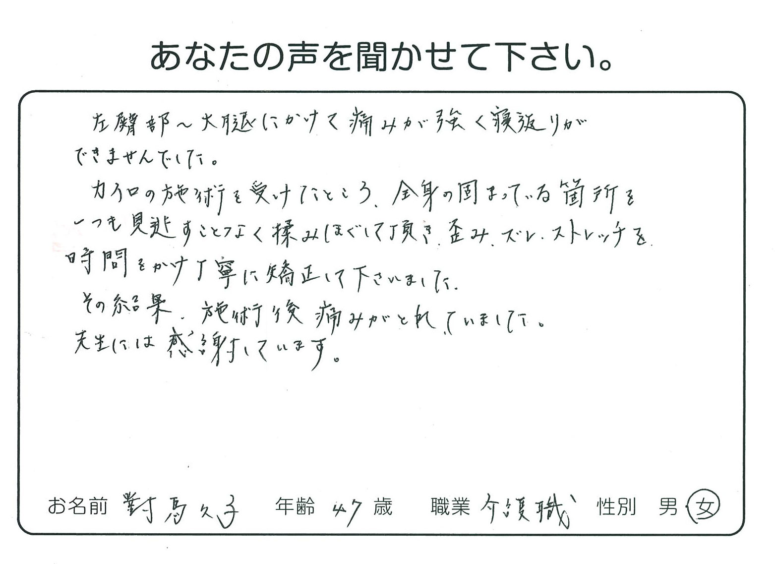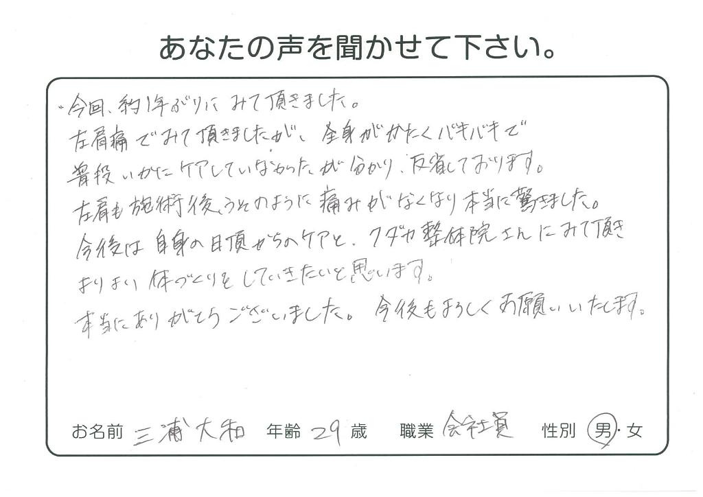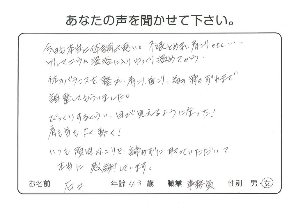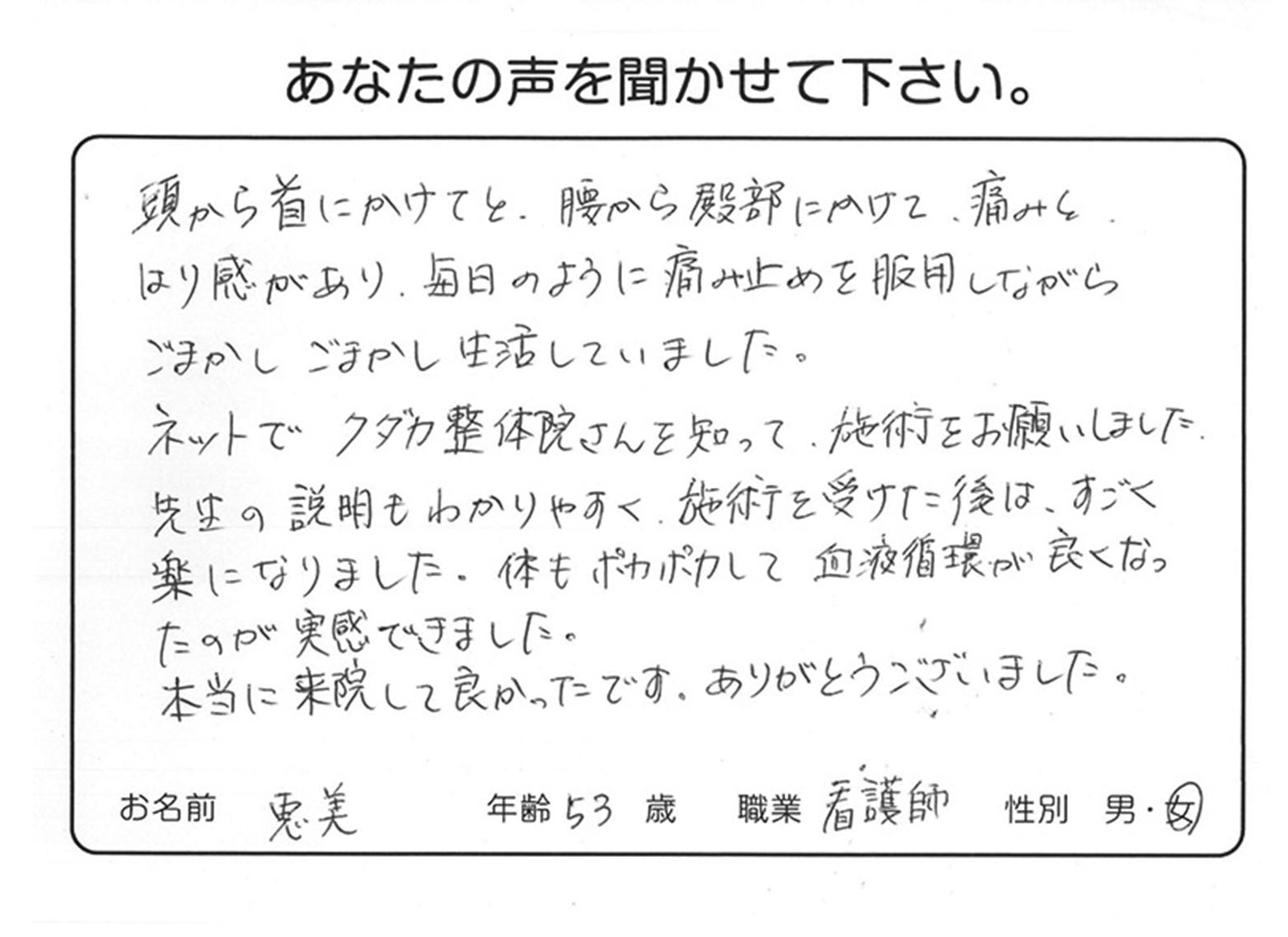 たくさんのお言葉ありがとうございます。実際に見て感じた事を言葉に表す事って簡単な事ではないですね!みなさん一生懸命に書いていただいた事が無駄にならないよう施術させていただきます。